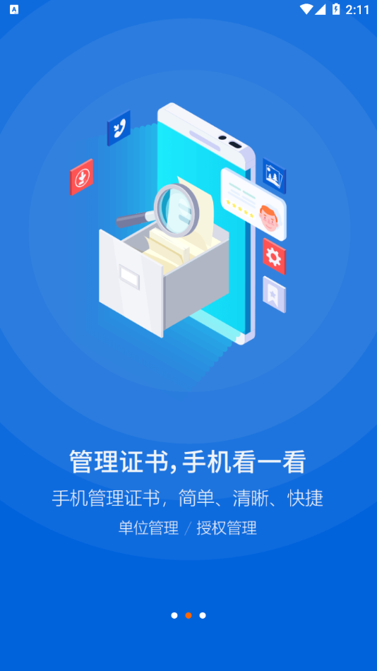 管理证书,手机看一看就能掌握所有证书状态,操作简单直观。手机管理证书功能设计人性化,提供单位管理/授权管理等实用功能,让证书管理变得简单、清晰、快捷。支持多维度筛选和批量操作,大幅提升管理效率。