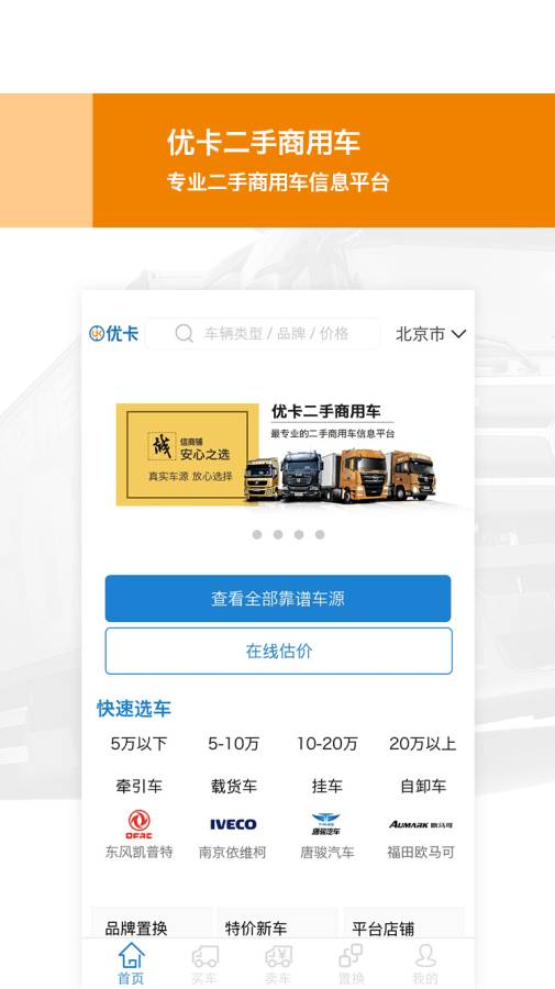 优卡二手商用车是国内领先的专业二手商用车信息服务平台,致力于打造行业标杆。平台整合全国优质车源,建立严格的车况检测标准,确保每辆车的真实信息透明可查。通过创新的互联网技术,为主机厂、经销商和终端用户搭建高效的信息互通桥梁,实现车源精准匹配。平台还提供专业的金融贷款服务,解决用户资金难题,让商用车交易更轻松无忧。