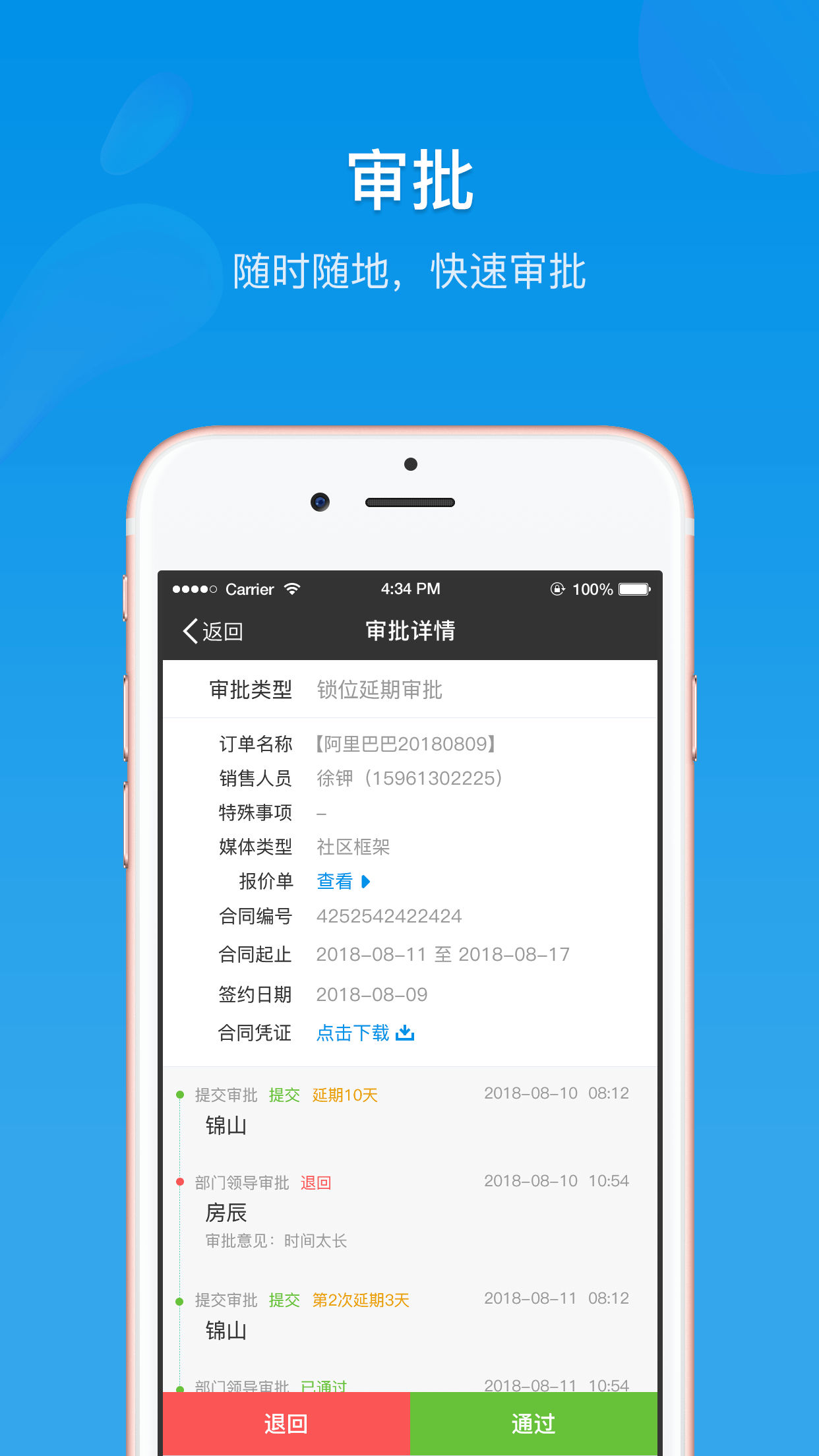 多级审批流程支持手机端一键处理,审批记录永久保存。特殊情况下可开启加急通道,确保重要业务不会因审批延误。