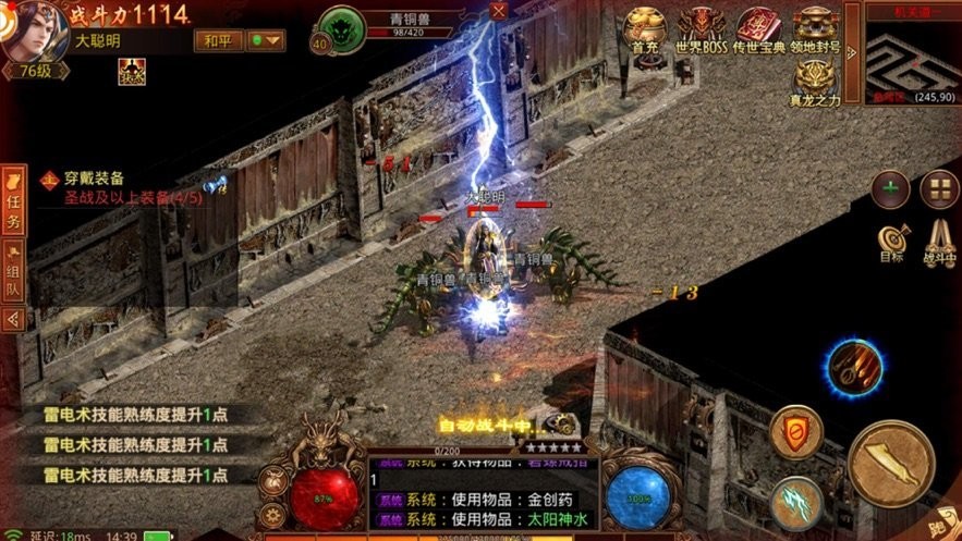 游戏采用动态BOSS刷新机制,全地图随机出现强力BOSS,考验玩家的探索能力和反应速度。经典地图和玩法经过高清重制,既保留原汁原味的传奇体验,又带来全新的视觉享受。游戏高度还原传奇经典内容的同时,加入了更多自由玩法,如摆摊交易、社交互动等,让玩家在战斗之余也能享受轻松的游戏时光。