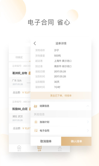 ,省心;从合同签订到运费结算全程电子化操作,减少纸质文件处理,让航运管理更加轻松便捷。