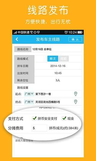 拼车路线的快速发布功能让您只需简单几步就能完成需求发布;