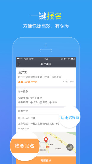 优化报名流程,全程跟进闪电入职;简化了简历投递步骤,新增进度追踪功能,让求职者对招聘流程一目了然。