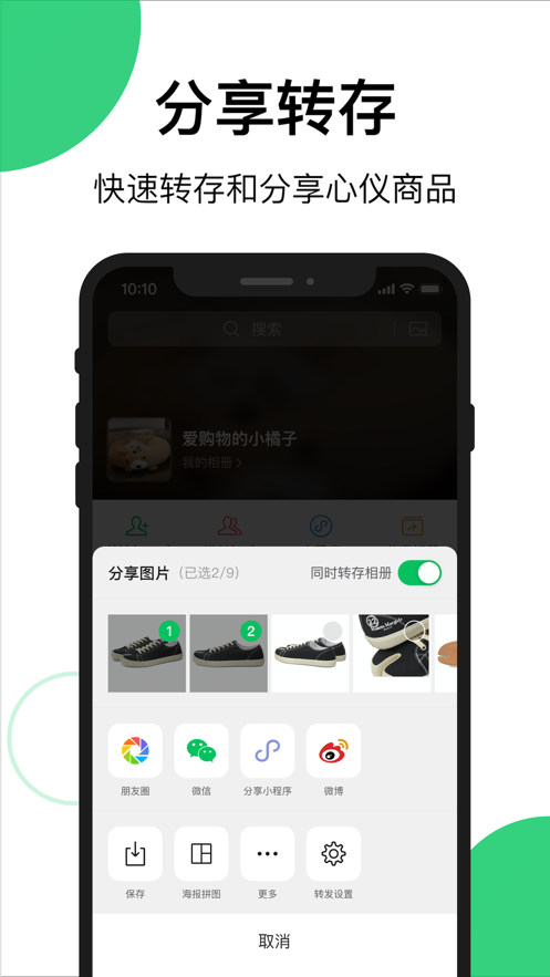 【分享转存】支持快速分享和转存心仪商品,方便商家进行商品推广和客户引导,提高转化率和销售业绩