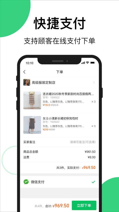 【快捷支付】集成完善的支付系统,支持客户在线下单,同时提供便捷的订单管理功能,让交易流程更加顺畅