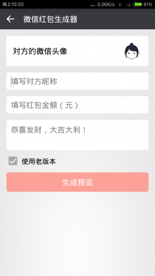 八大栏目分类,海量素材任你选择,满足你的各种装B需求。内置投稿功能,你可以投稿创意,我们为你制作成图片。软件持续更新素材,紧跟新闻热点,让你的装B内容永远新鲜。伪装更加轻松,一键生成图片,让你的社交圈瞬间惊艳。