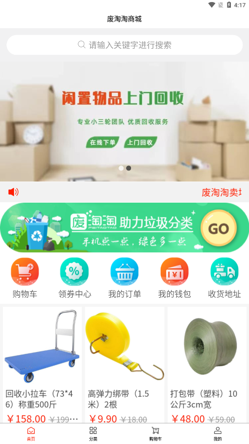 废淘淘商城app是一款专注于闲置物品回收服务的专业平台,为用户提供高效便捷的上门回收体验。通过简单的在线预约和下单操作,即可享受安全可靠的回收服务,轻松解决闲置物品处理难题。