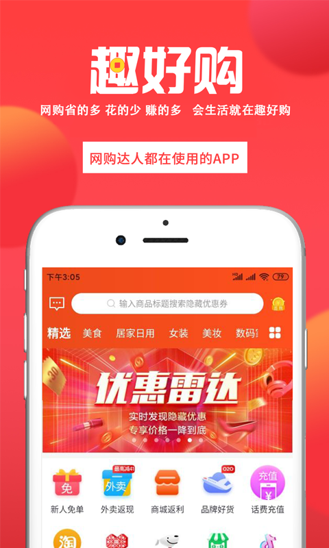 趣好购app打造了一个品类齐全的网购平台,商品种类覆盖生活各个场景;