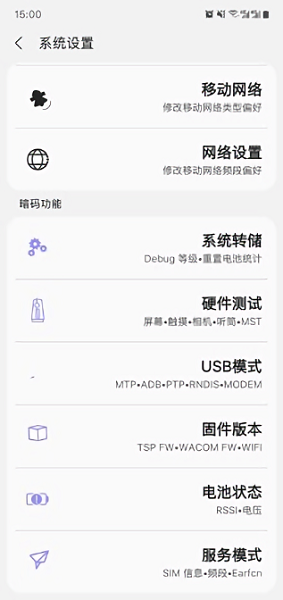 强大暗码功能:包含系统转储、硬件测试、USB模式、电池状态等多项专业服务;