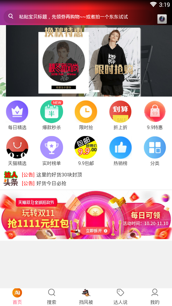 手淘达人app是一个在线购物平台,为您提供淘宝和天猫。有了手持淘达,你每天都可以得到很多优惠券。这些是内部优惠券,所以你可以节省很多钱。如果你喜欢购物,不要错过。下载它!