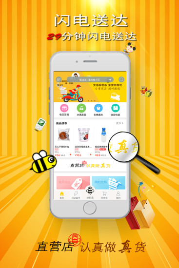 两只小蜜蜂是一款专业的生活服务平台,是你个人的生活助手,主要是提供配送服务,专注于社区一公里配送,方便快捷。你可以通过它买菜,购物,点餐一步到位。以中高端社区年轻白领为目标人群,自建配送站来保障及时配送的服务模式,专注于社区一公里配送,基于移动终端的技术解决方案提供O2O运营服务的公司。主打新鲜蔬菜1小时送达。
