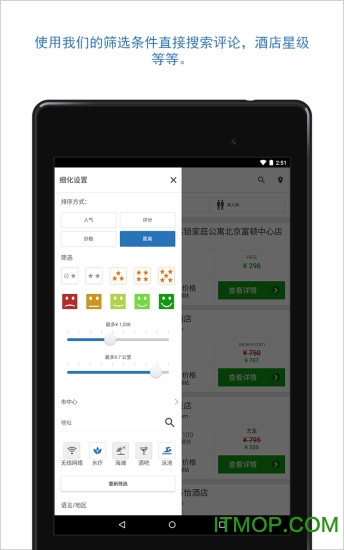 -细化筛选:设置价格,星级,距离,设施等条件筛选更符合需求的酒店