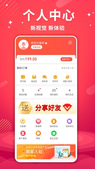 海量商品随心选购,商品信息展示简洁明了;实时更新各类优惠活动,让购物更轻松;多种红包奖励机制,助您享受更多优惠福利。