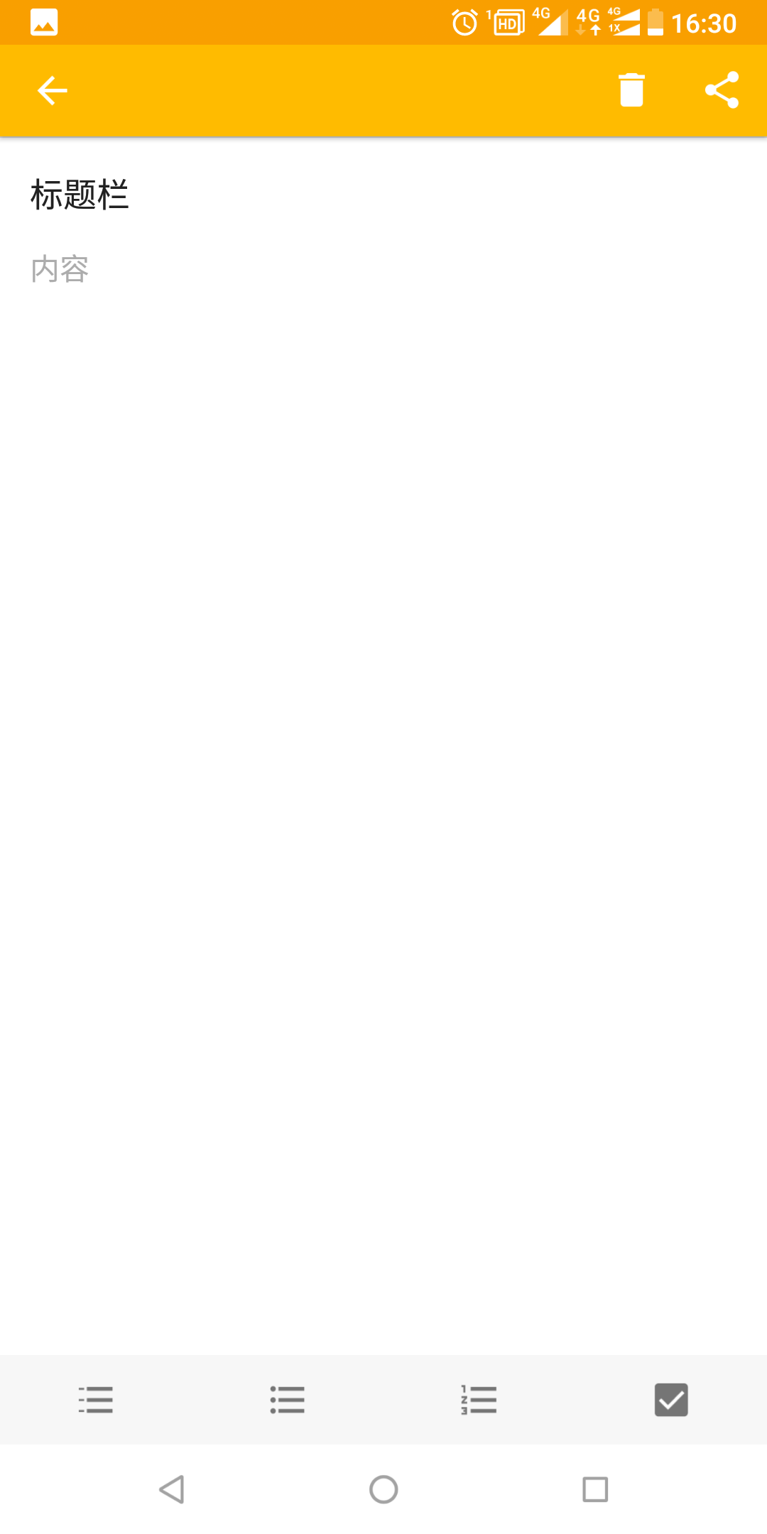 应用采用Material Design设计语言,界面清爽无冗余。底部工具栏提供多种快捷排版选项,包括项目符号、数字序号和待办事项勾选框。支持将记录内容以文本或图片形式快速分享。