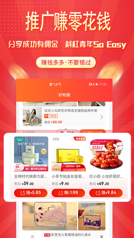 不止省钱,分享商品能获益,下单还能享受返利!省得多赚得多,别人网购吃土,自己网购省赚。