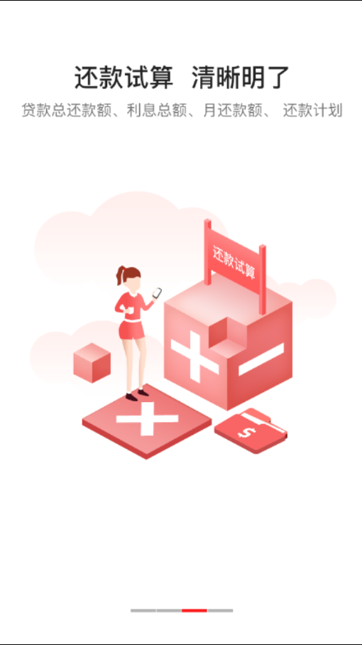还款试算,清晰明了,贷款总还款额,利息总额,月还款额,还款计划;