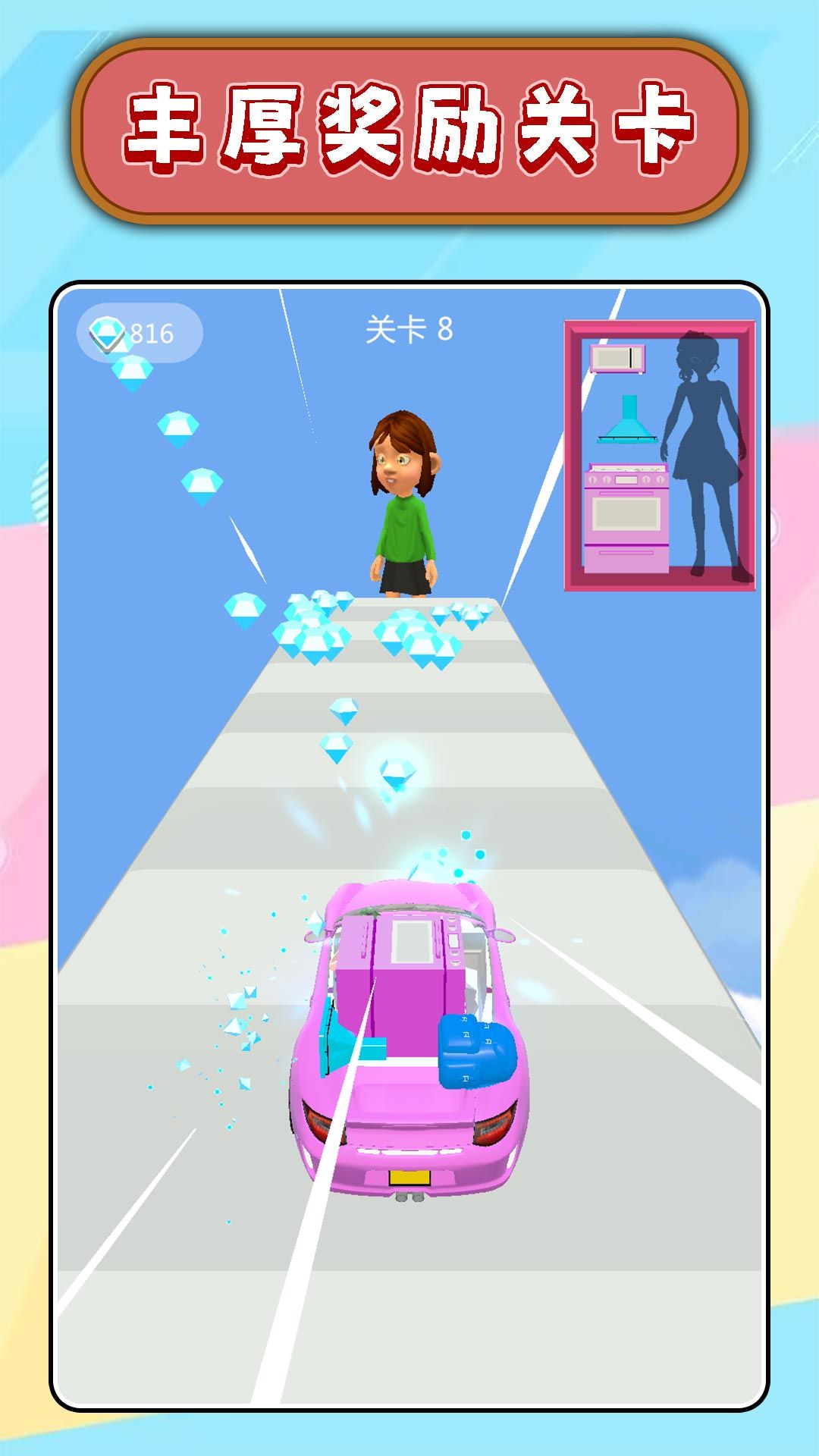 美女变装大师是一款充满趣味的跑酷冒险游戏,玩家将跟随一位时尚美女展开精彩旅程。在奔跑过程中,你可以收集各式各样的服装、宠物和座驾,不断提升角色魅力。游戏拥有独特的赛道设计和魔性玩法,生动活泼的画风带来沉浸式体验,让你在展现跑酷技巧的同时享受变装的乐趣。