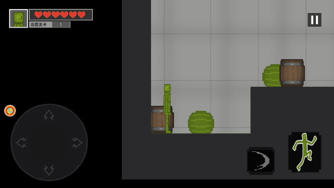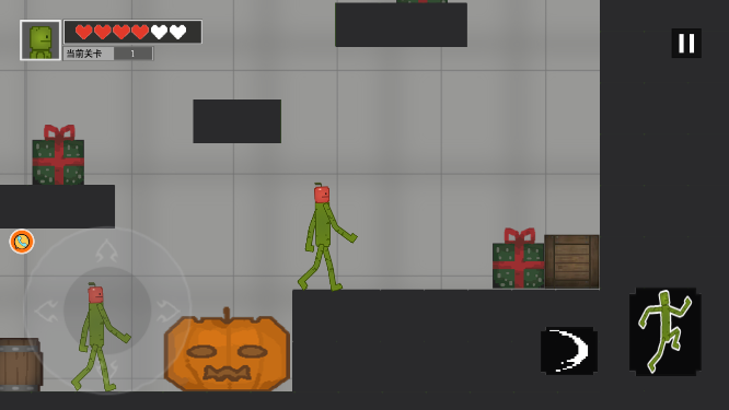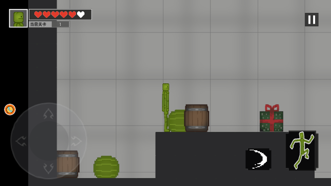 在游戏中你需要用轮盘去进行移动,另外一边还有个跳跃键等你来使用,另外那个是攻击