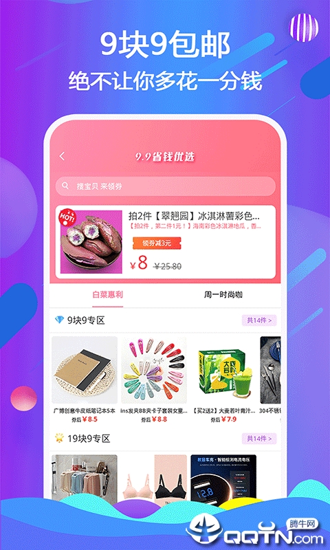 帮你比价挑白菜:每天精选小于6块的超值商品,白莱券轻松领,剁手。