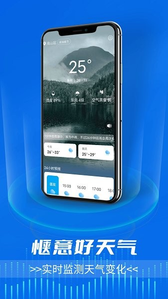 「惬意好天气」作为专业的天气预报应用,为您提供包括实时温度、空气质量、15天预报以及精准分时预测在内的全方位天气服务。强大的天气推送功能覆盖全国3000多个市县,让您随时掌握天气变化。