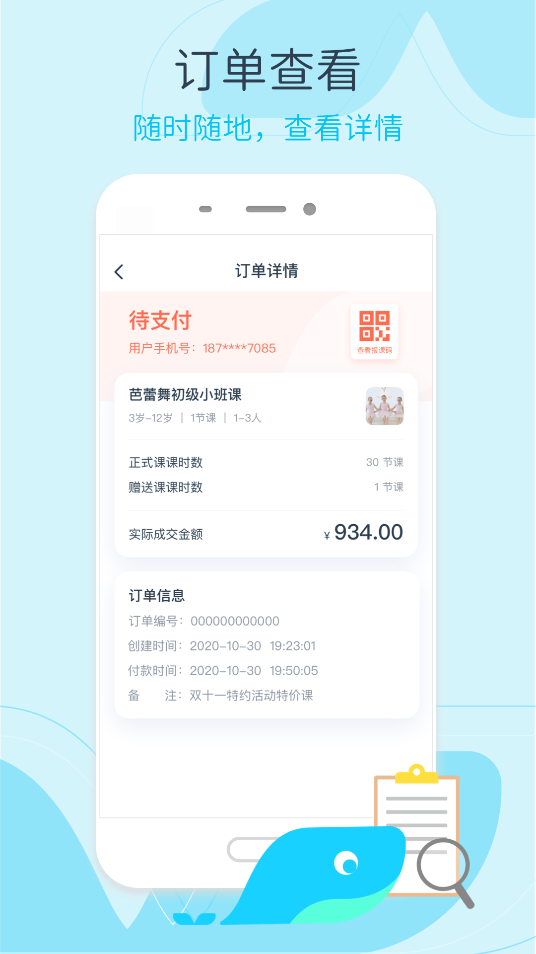 【移动创单】支持线下快速创建订单,机构可即时生成报课码,学员扫码即可完成课程报名与支付