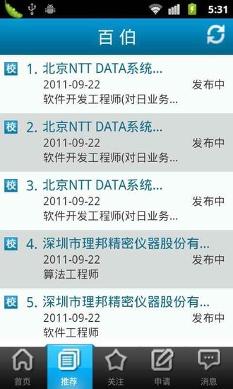 百伯招聘安卓版专为校园求职者量身定制,集资讯、推荐、关注、申请、消息五大核心功能于一体。资讯板块实时更新企业招聘信息和宣讲会动态,结合LBS定位技术,可一键导航至宣讲会现场。智能推荐系统会根据用户的求职偏好、投递记录和搜索习惯,精准匹配适合的职位机会。