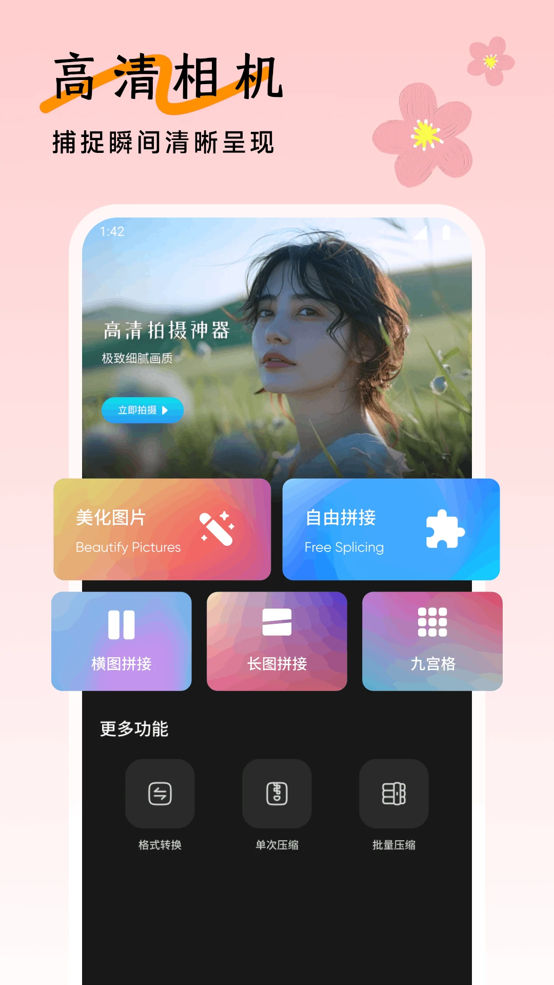 支持一键美化功能,自动优化照片的亮度、对比度和色彩饱和度。