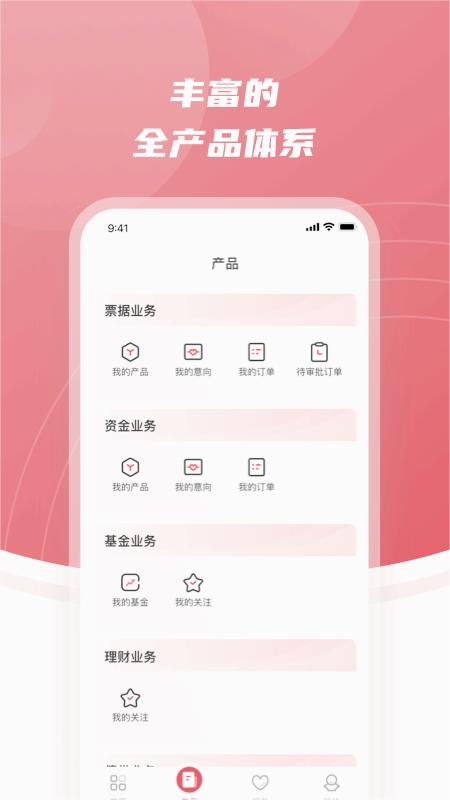 同业机构客户可通过移动端实时获取各类产品资讯,使用多样化的业务处理功能,轻松实现移动办公。这款轻量级应用让每个手机都成为同业业务的移动办理终端。