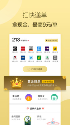 黄金扫单模式下,扫描快递单就能获取,最高9元/单;