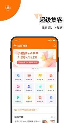 超级集客是一款功能强大的智能营销软件,界面设计简洁大方,为用户提供群发、分类采集、地图采集等实用功能。它能高效收集各类商业信息,操作简单便捷,是商家和个人用户的得力助手。