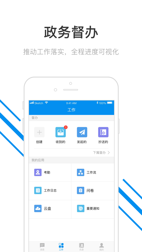督办app作为一款专业的移动办公平台,集成了即时通讯、政务督办、流程审批、通知公告等多项实用功能,为用户提供安全高效的数字化办公体验。该平台专为提升政府及企事业单位的工作效率而设计,现已在各大应用商店上线,诚邀您下载体验。
