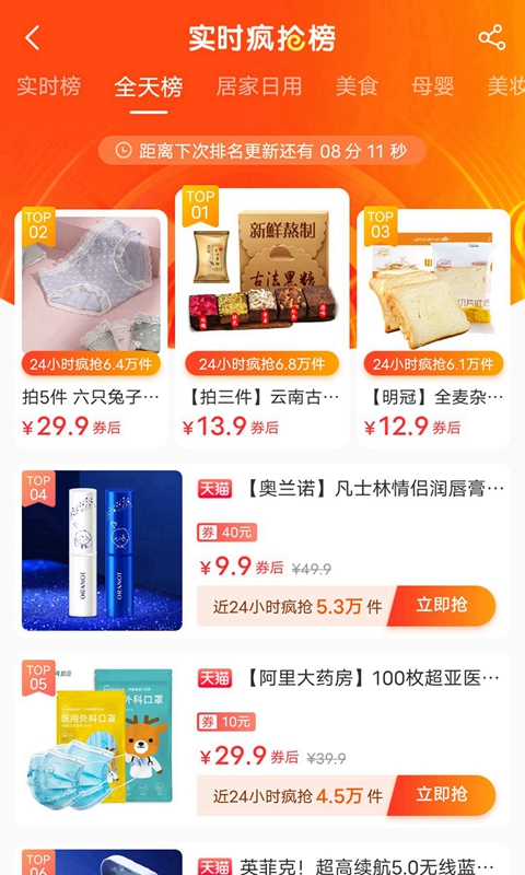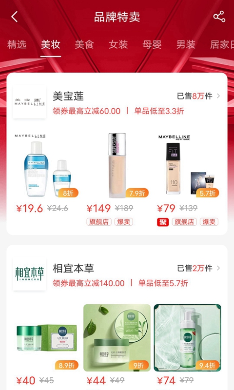 9.9包邮、品牌特卖、限时秒杀、热卖榜单、、每日半价、折上折等覆盖生活学习娱乐的方方面面。