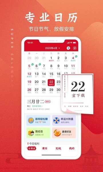 24节气、节假日提醒、农历查询、星座属相、历史今天,一应倶全!