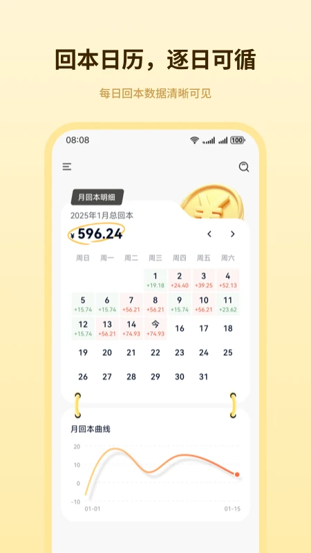 社交化组件:可分享回本进度到社交平台,邀请好友监督打卡形成互动闭环。