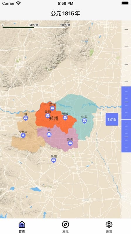 用于了解郑州历史地图App,帮助对郑州历史感兴趣用户完整了解从公元前3000年到现在的历史变迁