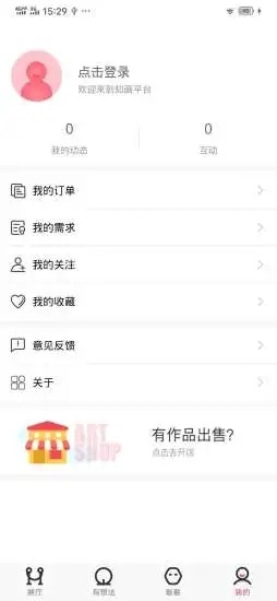 商家与买家于一体,每一个用户即可以在线购买产品,也可以入驻知画app开店铺,进行售卖作品。