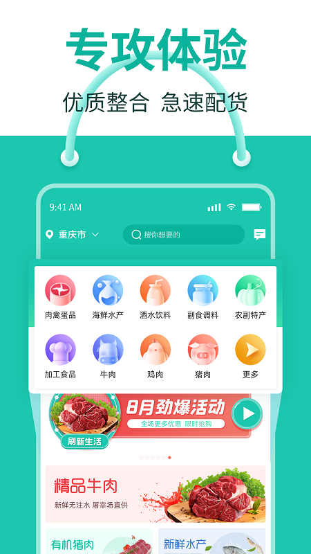 鲜肉禽、冰冻水产、蛋奶制品、米面粮油