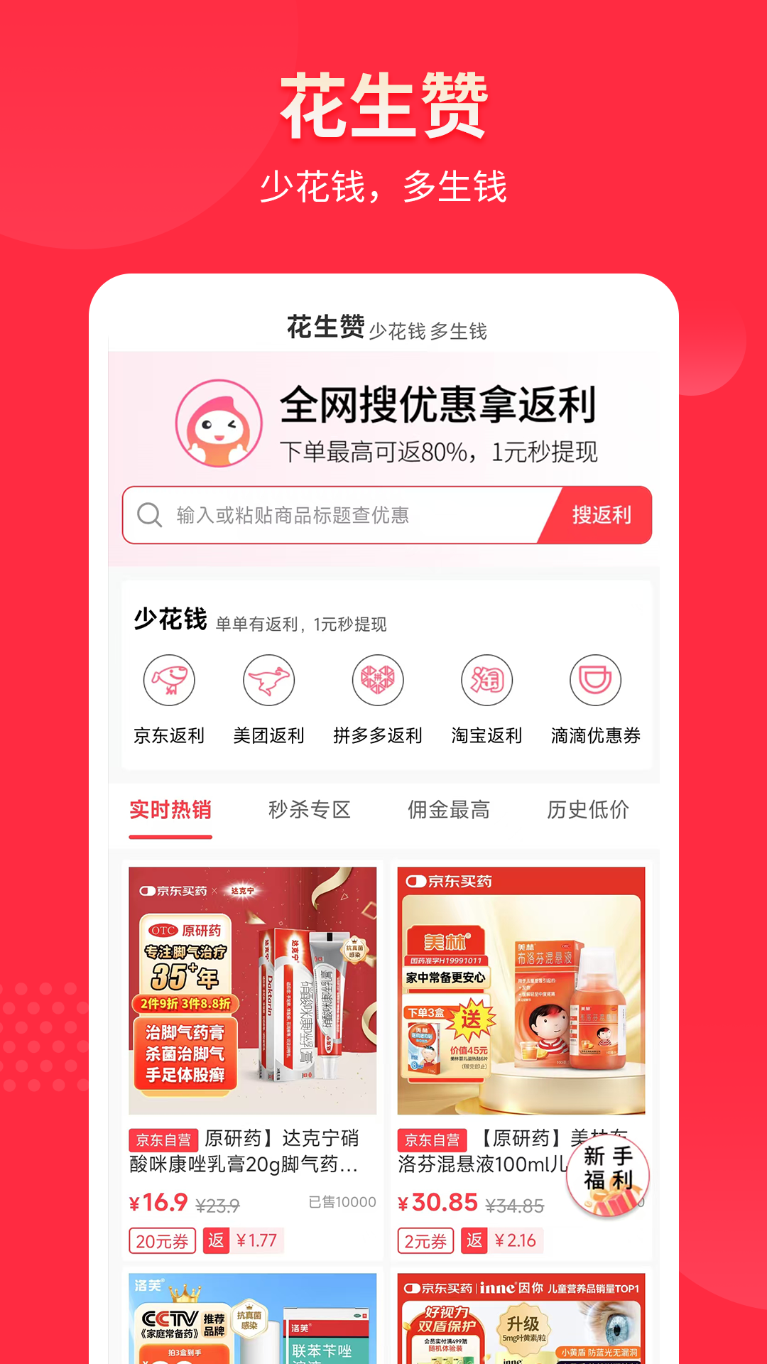 除了购物优惠外,用户通过花生赞下单还能获得一定比例的返现,让每一笔消费都更有价值。