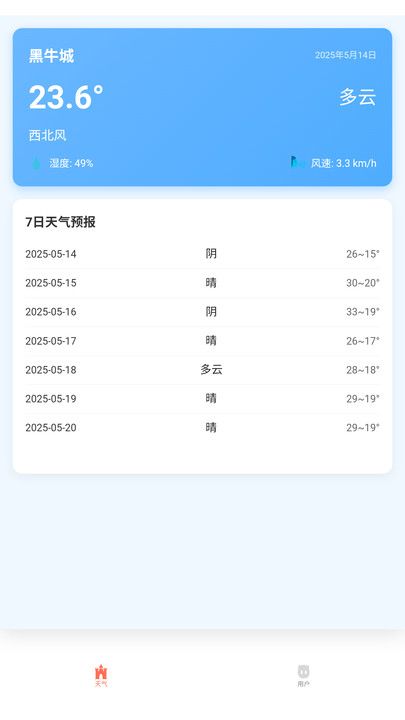 界面简洁直观,重点突出天气信息,即使首次使用的用户也能迅速上手,轻松获取关键内容。