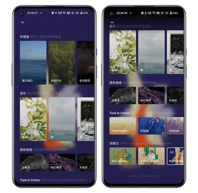 ORelax在聆听这个菜单中,能听到大自然的呢喃细语、心灵深处音符碰撞的、舒适频率的颜色噪音!
