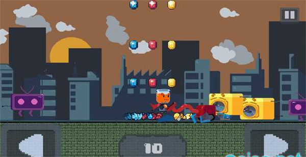 在这款像素风格的休闲游戏中,你将扮演一个可爱的榨汁机器人,穿梭于城市各个角落展开奇妙探险。收集沿途散落的各色宝石,利用它们独特的力量击退阻碍前进的敌人。与这个萌萌的机器人伙伴一起,在冒险中收集更多美味的果汁吧!