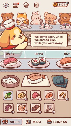 独特的经营体验:在《狗狗回转寿司》中,你将体验到前所未有的经营乐趣。由狗狗员工组成的寿司店带来无限惊喜,你需要不断优化经营策略,在保证餐厅正常运转的同时提升顾客满意度,创造更多收益。