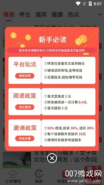 用户在阅读过程中,可将感兴趣的文章分享给好友或发布到社交平台,每获得一次有效阅读就能立即获得相应收益。