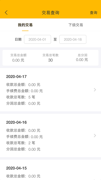 交易查询功能可查看所拓展商户的完整交易记录