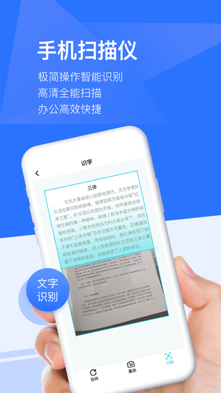 这款APP能将各类纸质文档快速转换为电子文件,操作简单只需拍照即可完成。支持多种文件格式识别,提供智能编辑功能让文档处理更高效。无论是普通文本还是特殊证件,都能实现高清扫描和精准识别。