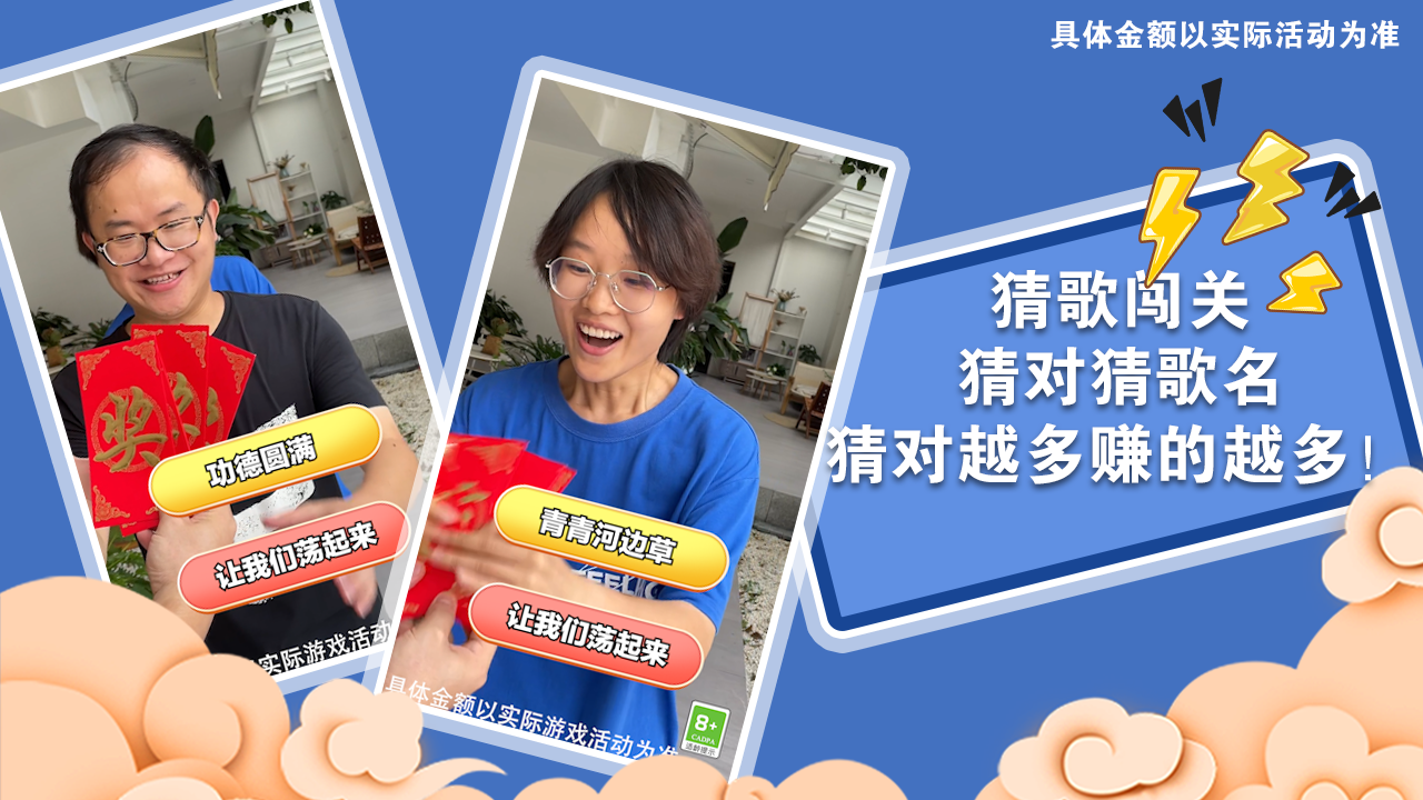 分为闯关模式和模式。闯关模式,听歌曲猜出正确的歌名,可以选择道具辅助,道具有听副歌和直接提示两种,每过一关就能在排行榜上获得排名。pk模式是1v1比赛,在60秒内猜出歌名多的人获胜,获胜场次越多等级越高,可以升级更高的段位,挑战更多牛人。