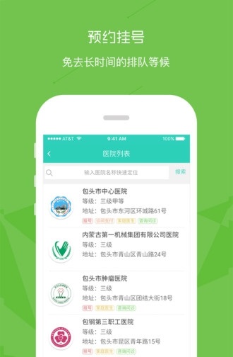 在线挂号:用户可以直接通过应用,选择自己需要的医院、科室和医生进行预约挂号。