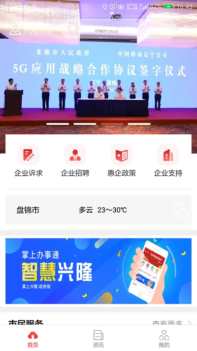 智慧兴隆是一款专为盘锦市民设计的综合性便民服务平台,集政务办理、生活服务和资讯查询于一体,为用户提供高效便捷的数字化生活体验,满足日常多样化需求。