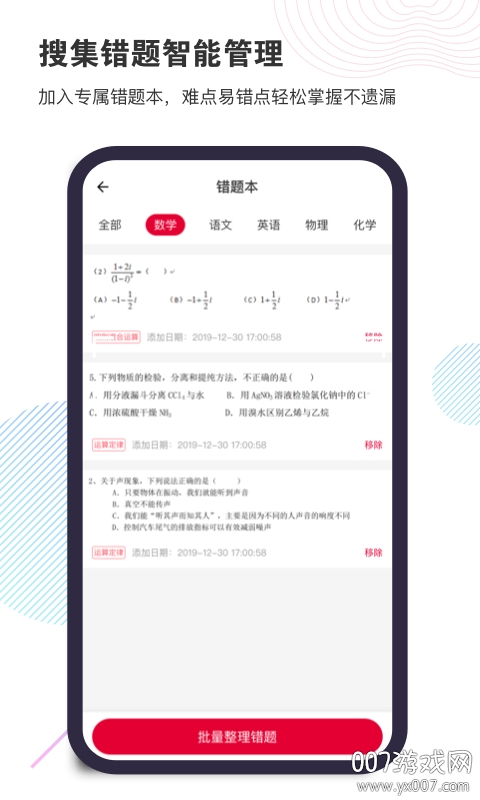 每一个学科的题目都是可以快速搜出来的,而且拍照或者语音搜题还是很简单的,出来的答案很正确,能给大家提供比较好的做题参考,每一次的答错的题目全部都有记录!