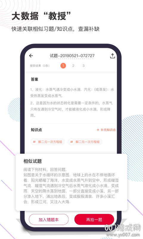 拥有大数据内容,不同的题目都会在这里有所覆盖,可以全面搜题。